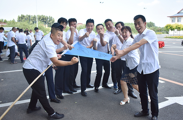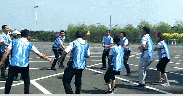 13时,素质拓展训练正式开始,在教官的带领下,分四队进行拓展,首先进行团队建设,四支队伍在各自队长的带领下确定了自己的队名、口号、logo以及队歌,团队氛围紧张热烈。在“同心击鼓”和“合力搭建”训练项目中,大家充分发挥团队协作精神,从失败中发现问题,在困境中寻找解决办法,直至挑战成功。
